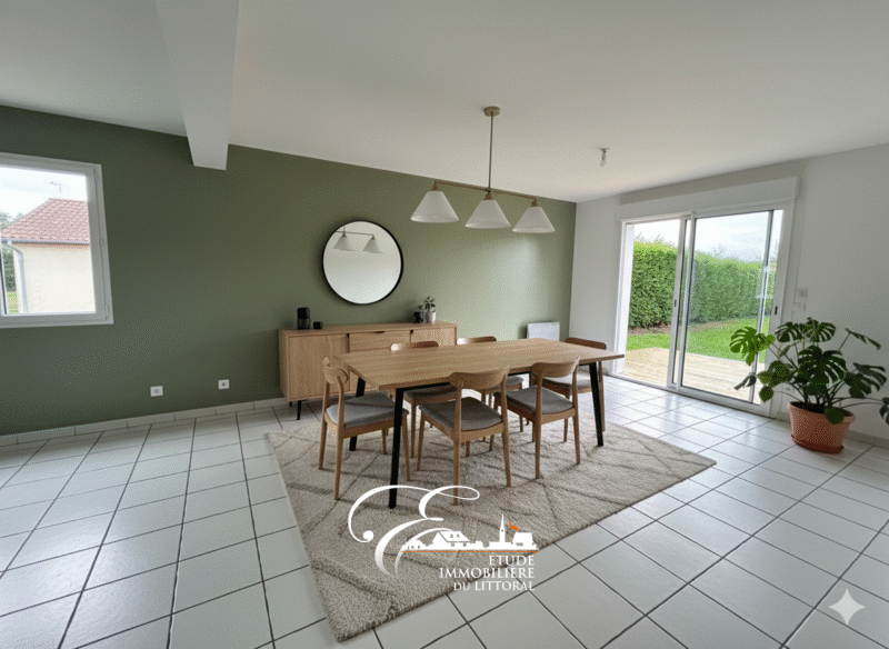 Elle comprend au rez-de-chaussée : salon/ séjour de 30m² ouvert sur une cuisine, cellier, vetiaire,wc.