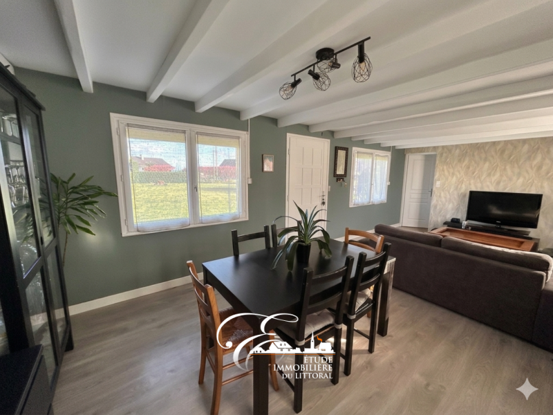 Elle comprend : un salon séjour (26m²), cuisine aménagée, véranda (8m²), 3 chambres (9, 12 et 14m²), salle de douche.