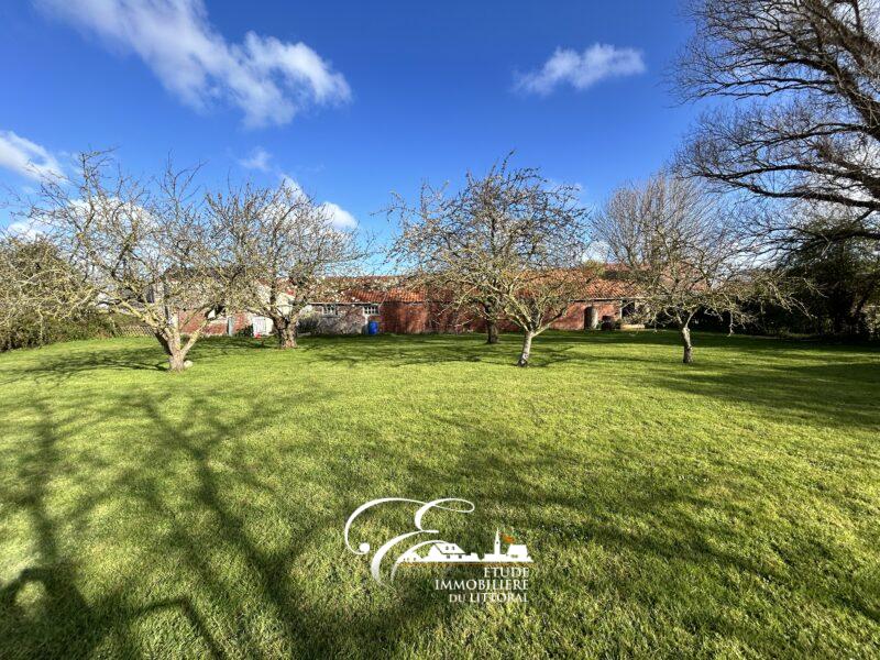 Maison type fermette en plain-pied sur 4500m² de terrain avec garage et dépendances.