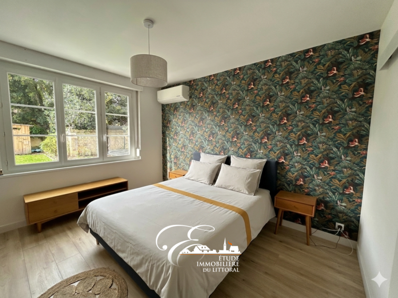 Elle comprend: hall d’entrée, salon, cuisine aménagée et équipée, séjour, dressing et lingerie, une chambre, salle de bains avec wc.